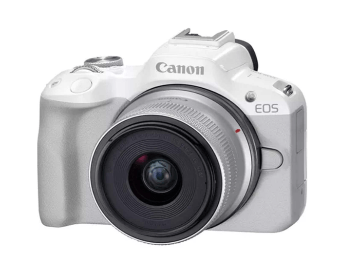 Canon EOS R50 offers superb 4K recording and fast autofocus in a compact body.